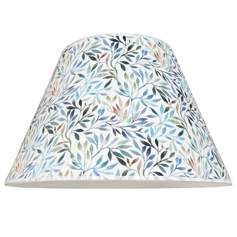 Abażur z tkaniny we wzór roślinny do lampy podłogowej w kształcie stożka wykonany z delikatnego weluru. Przepiękny abażur idealny do jasnych wnętrz w stylu klasycznym lub prowansalskim. Pasuje do lamp stojących oraz dużych lamp stołowych.
