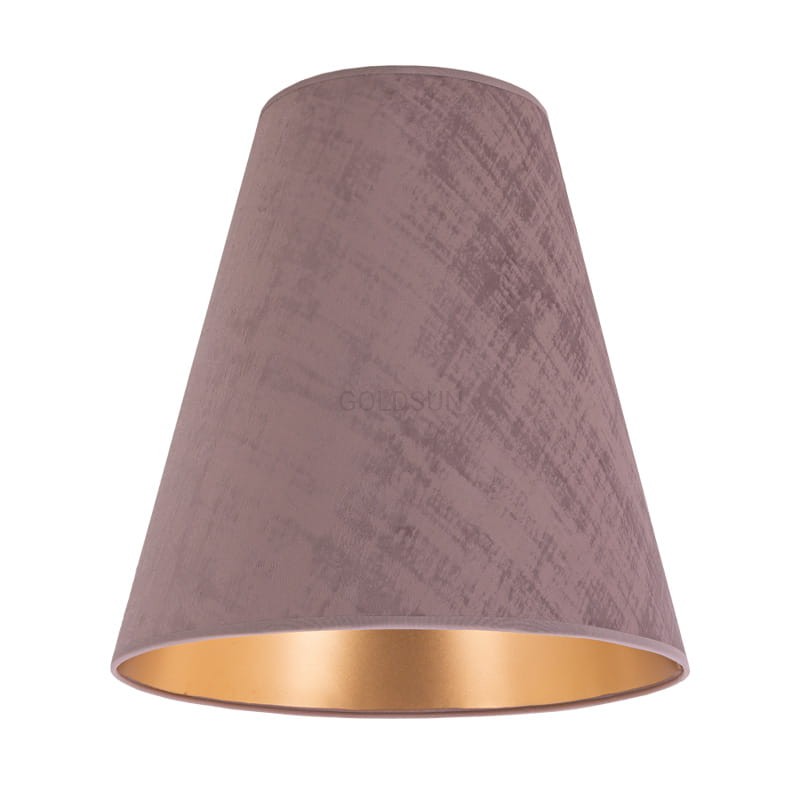 MATERIAŁ: najwyższej jakości welurowa tkanina certyfikowana podklejona od wewnątrz cieniutką złotą pleksi, wykończona lamówką, abażury są dodatkowo zszywane co zapobiega ich rozklejaniu w trakcie użytkowania