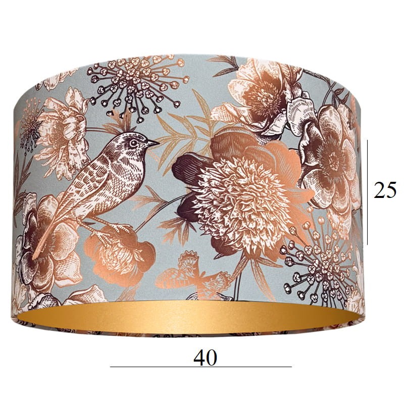 Abażur do lampy walec złoty kwiatowy wzór 14W E27 FLOWERS 40 wys 25