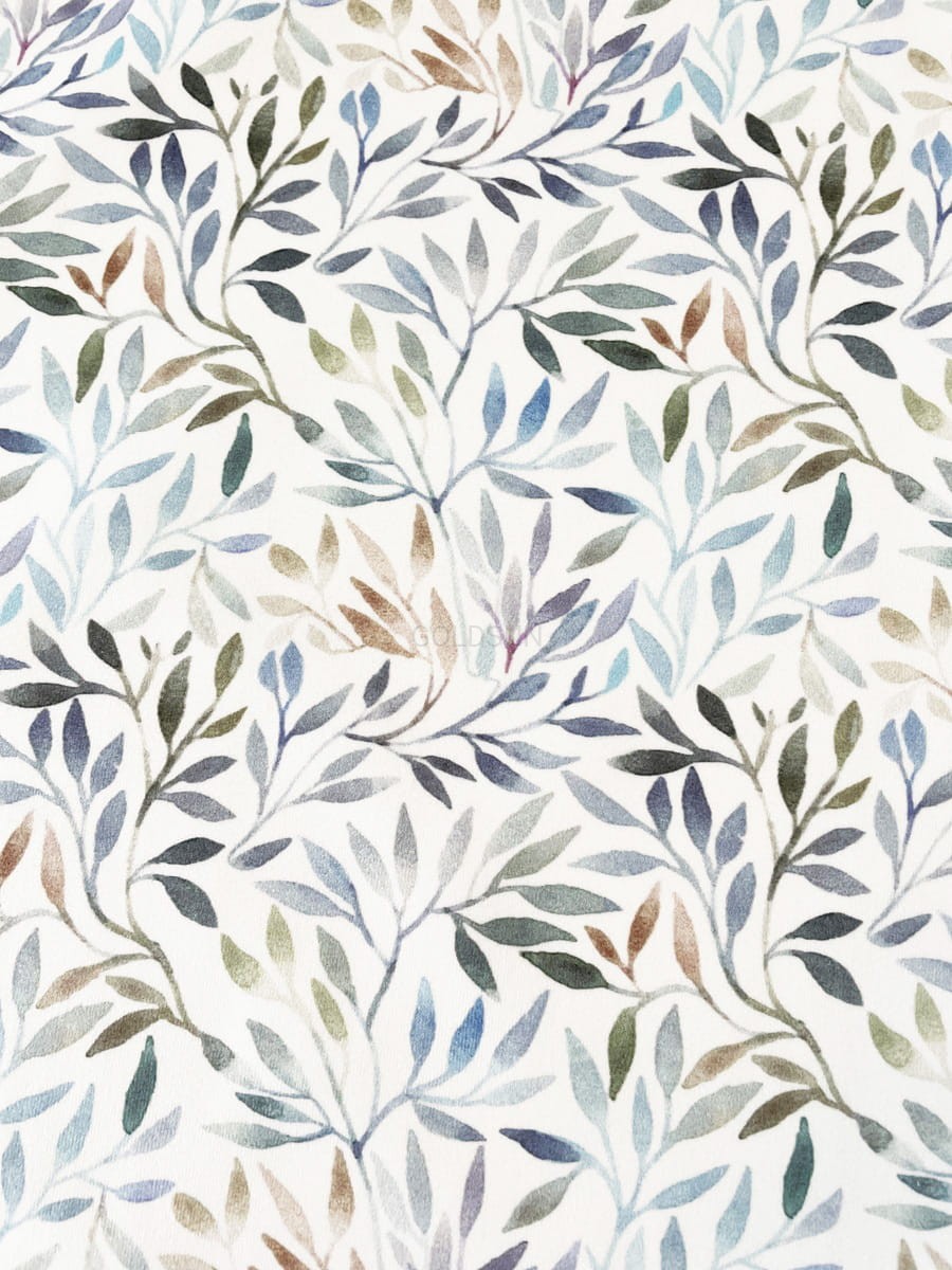 KOLOR: OLIVE WELUR - delikatne pastelowe listki na białym tle od spodu biały.