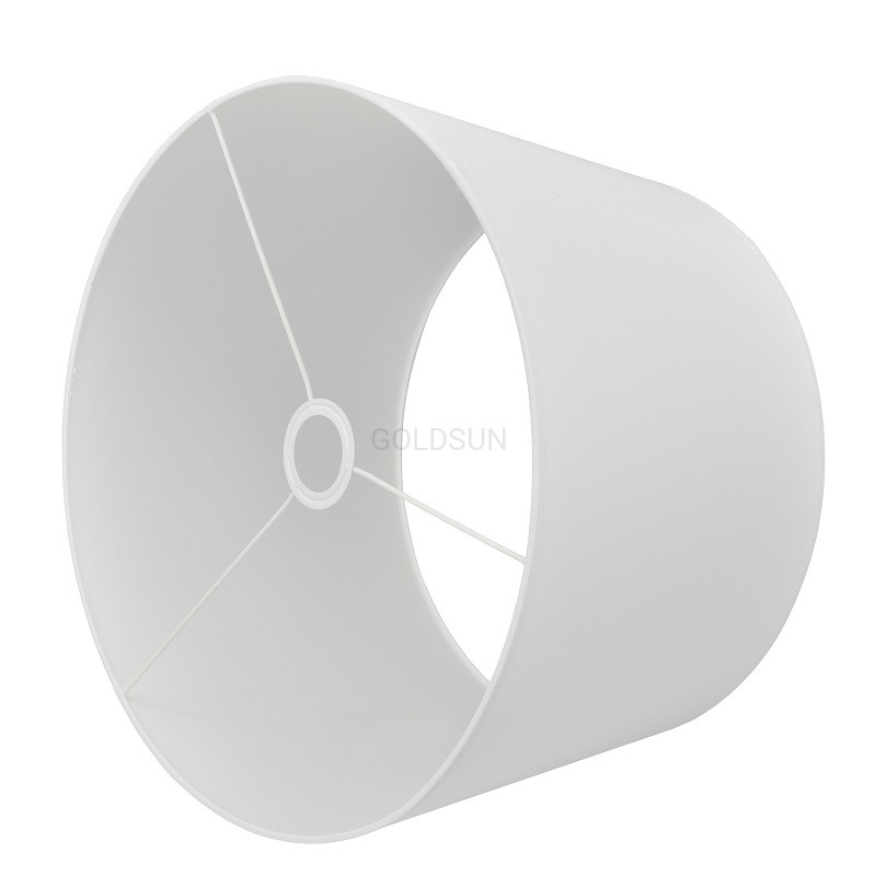 Biały duży abażur w kształcie stożka do lampy podłogowej.