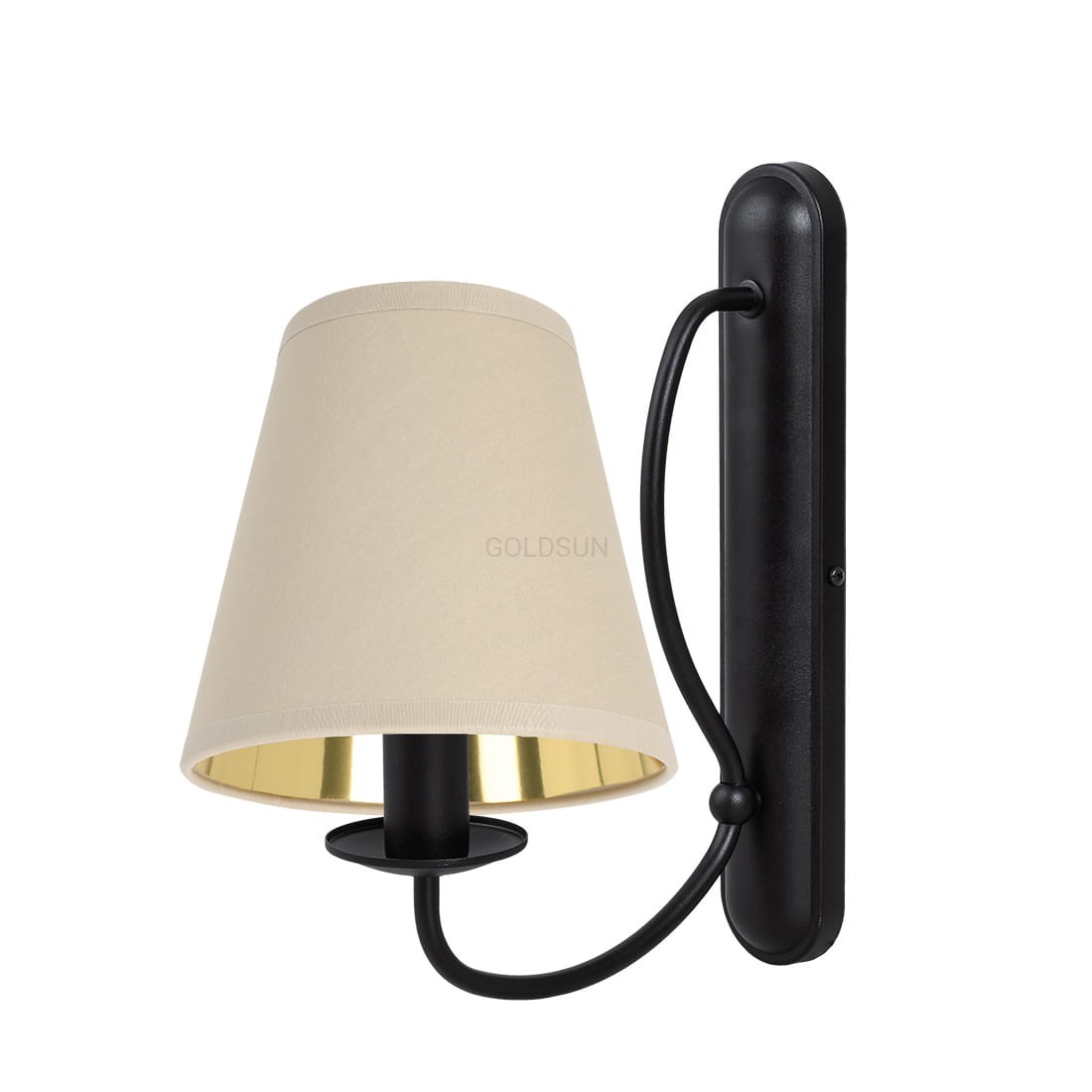 Czarno-złoty kinkiet do salonu OLIVER z beżowym abażurem ze złotym wnętrzem i czarnym stelażem to propozycja dla tych, którzy cenią sobie spokojne, ale efektowne oświetlenie. Beżowy kolor dodaje elegancji, a złoty środek abażura sprawia, że światło jest ciepłe i klimatyczne. Doskonale sprawdzi się w klasycznych i eleganckich wnętrzach.