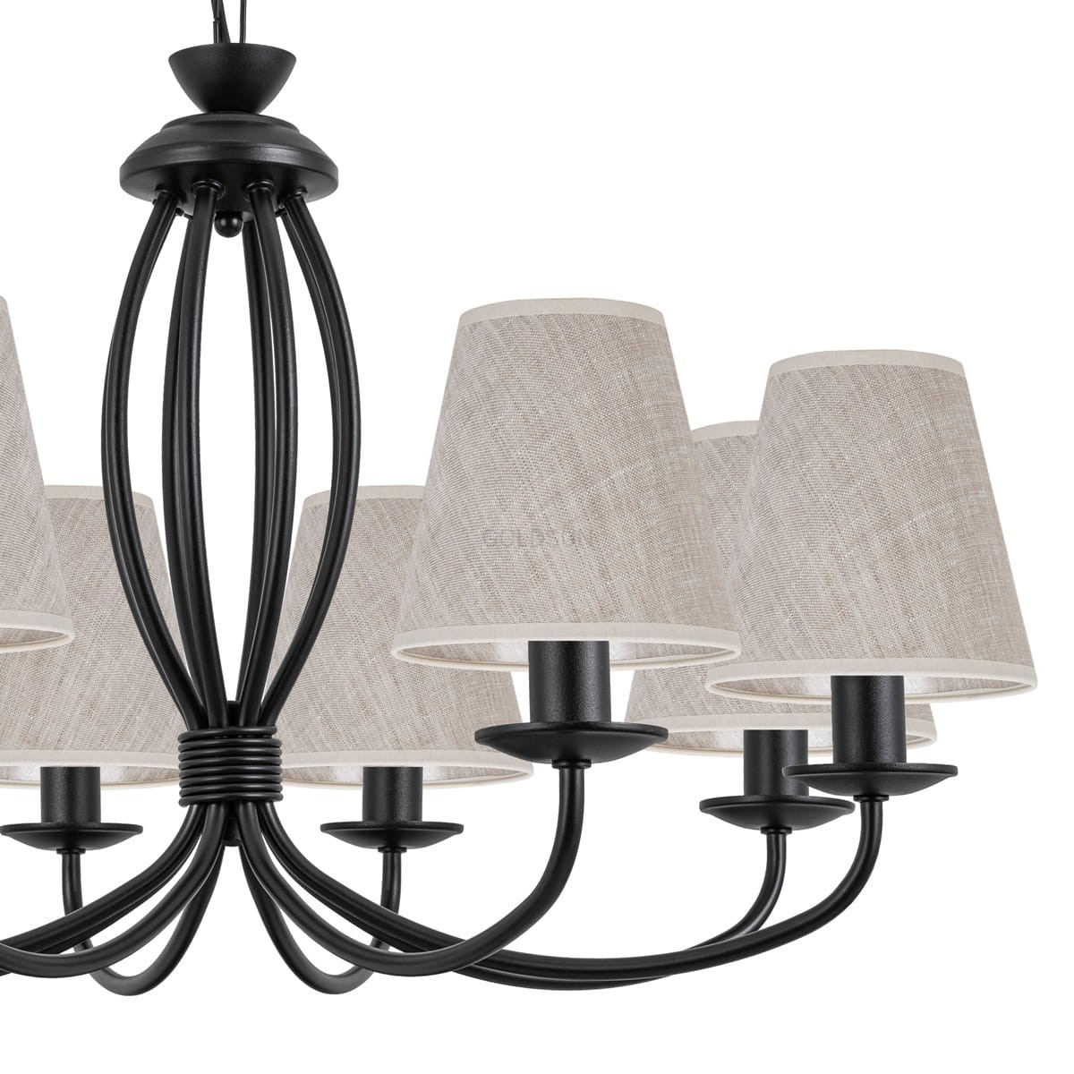 Czarny żyrandol z lnianymi abażurami OLIVER O3058 W8 CZA/AB/05/Le 8-płomienny