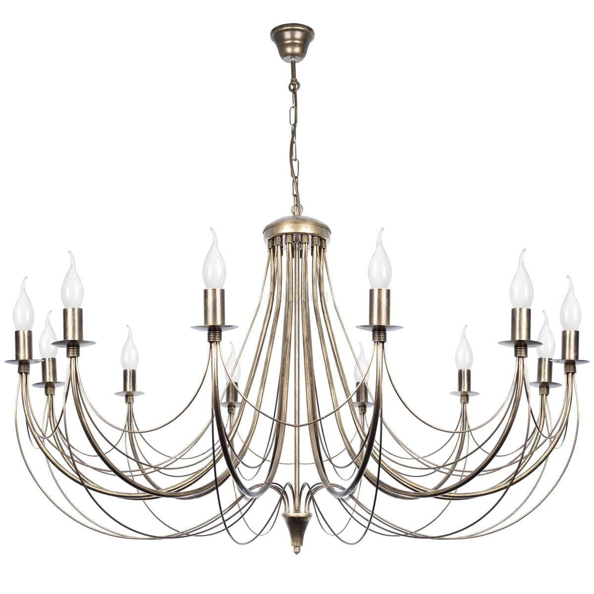 Duża lampa wisząca 12-ramienna JEWESA. Imponujący żyrandol idealny do przestronnych wnętrz takich jak salony, antresole, restauracje czy sale balowe. Smukłe ramiona wykonane z delikatnych drucików sprawiają, że mimo dużych rozmiarów żyrandol wygląda lekko i nie przytłacza wnętrza. Żyrandol to idealna propozycja dla tych, którzy traktują oświetlenie jako centralny punkt swoich przestrzeni. Ten klasyczny żyrandol robi wrażenie na każdym, kto wchodzi do pomieszczenia, jednocześnie dzięki rozmiarom oraz 12 żarówkom doskonale doświetli nawet duże przestrzenie. Stare złoto to nowy kolor w naszej ofercie, to klasyka i styl w jednym. Warto zwrócić uwagę na fakt, że ta duża lampa została wyprodukowana w Polsce, nie wymaga złożenia.
