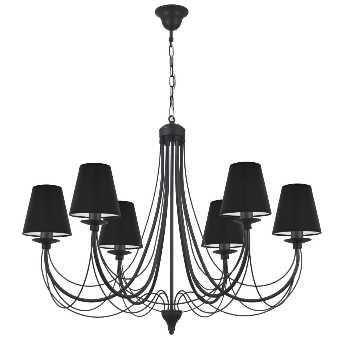 Duży czarny żyrandol klasyczny JEWESOS będzie wspaniale prezentować się w dużym salonie lub w eleganckiej restauracji, czy hotelu. Piękny żyrandol 6-ramienny na starannie wykonanym stelażu z abażurami w kolorze czarnym to idealny dodatek zarówno do tradycyjnie urządzonego jak i bardziej nowoczesnego wnętrza. Akcenty czerni i szarości obecne w wystroju wnętrza świetnie podkreślą urodę tej niebanalnej lampy sufitowej.