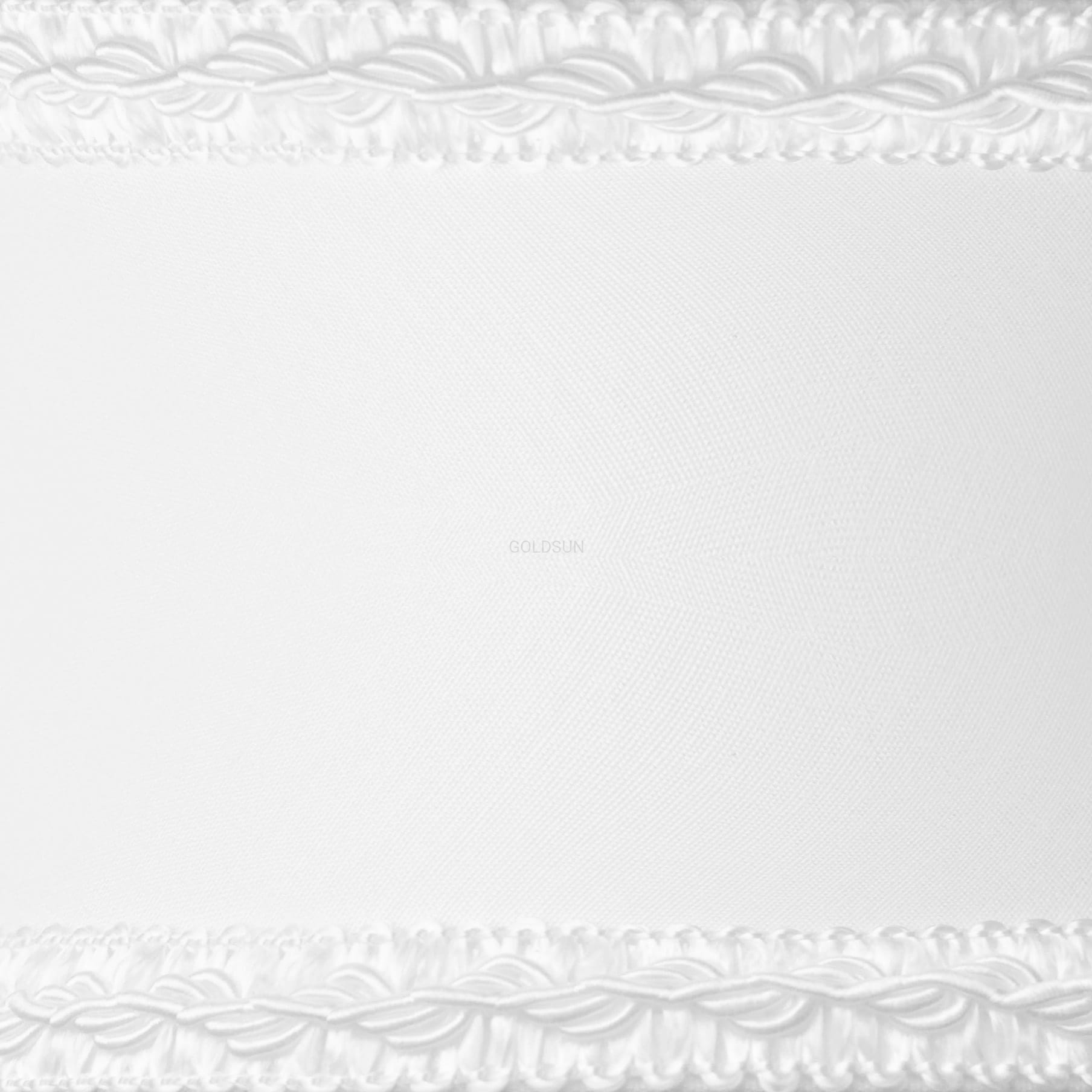 Elegancki biały abażur do lampy z dekoracyjną lamówką w kształcie stożka do lampy podłogowej lub do dużej lampy stołowej wykonany z tkaniny certyfikowanej. Abażur najwyższej jakości wyprodukowany przez polskiego producenta.