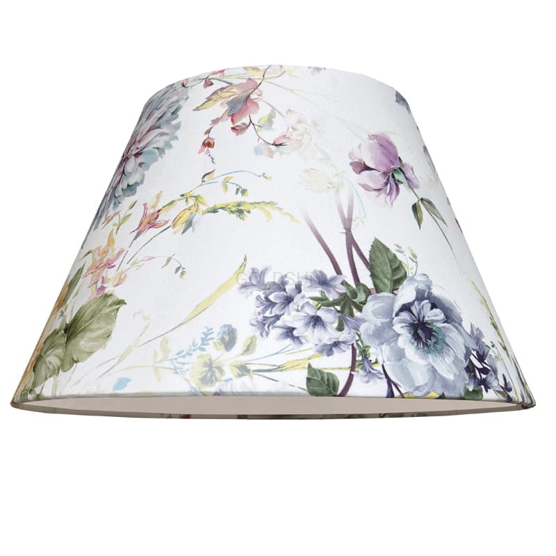 Abażur: w kolorze WIOSNA WELUR - delikatne kwiaty na białym tle od spodu biały, tkanina WELUROWA, abażur ręcznie wykonany, z podwijaną do wewnątrz tkaniną, bez lamówek