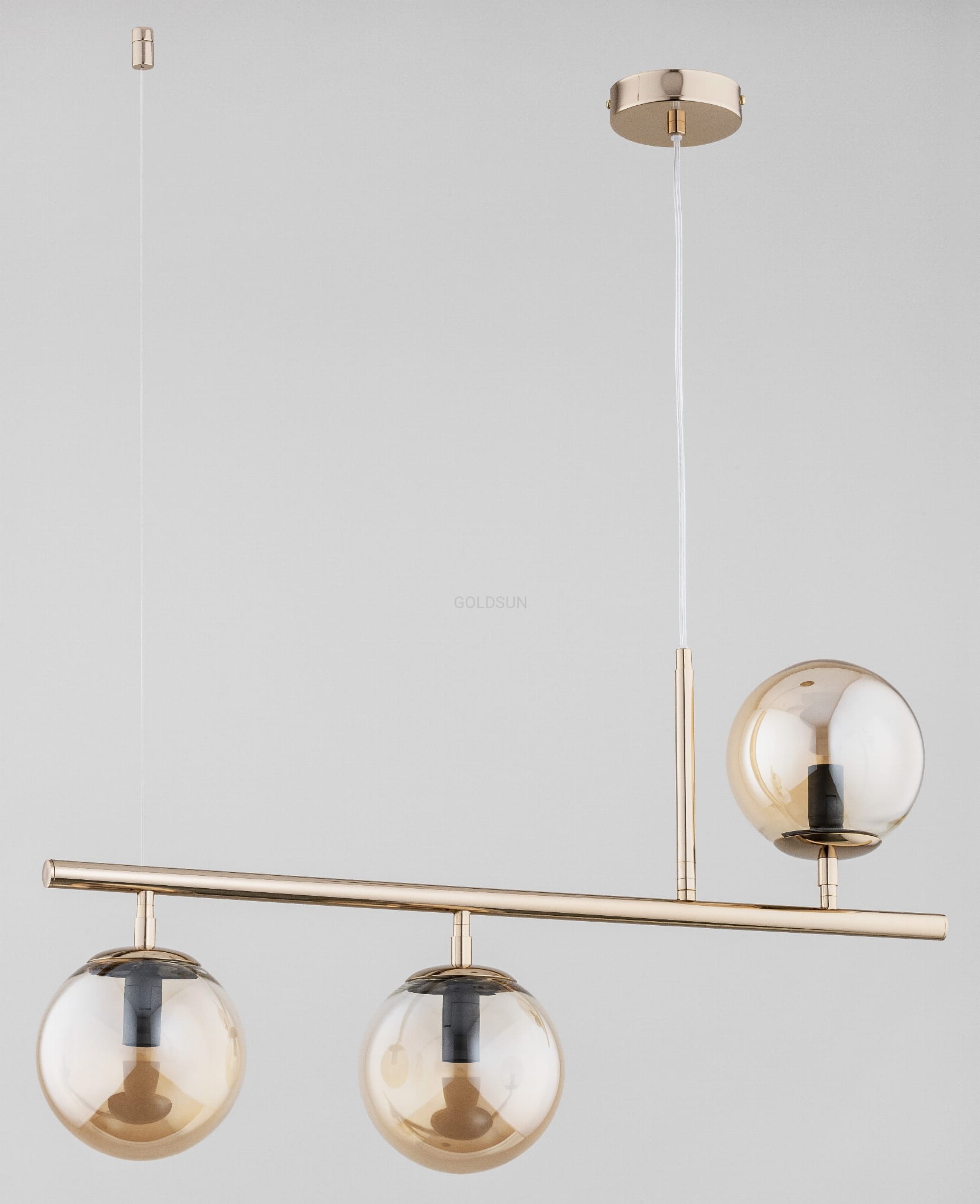 Nowoczesny żyrandol złote kule. Ten nowoczesny złoty model żyrandola będzie idealny do stylowych wnętrz. Szklane klosze w kształcie kuli odbijają światło wnosząc nieco magii do pomieszczenia. Producent polski.