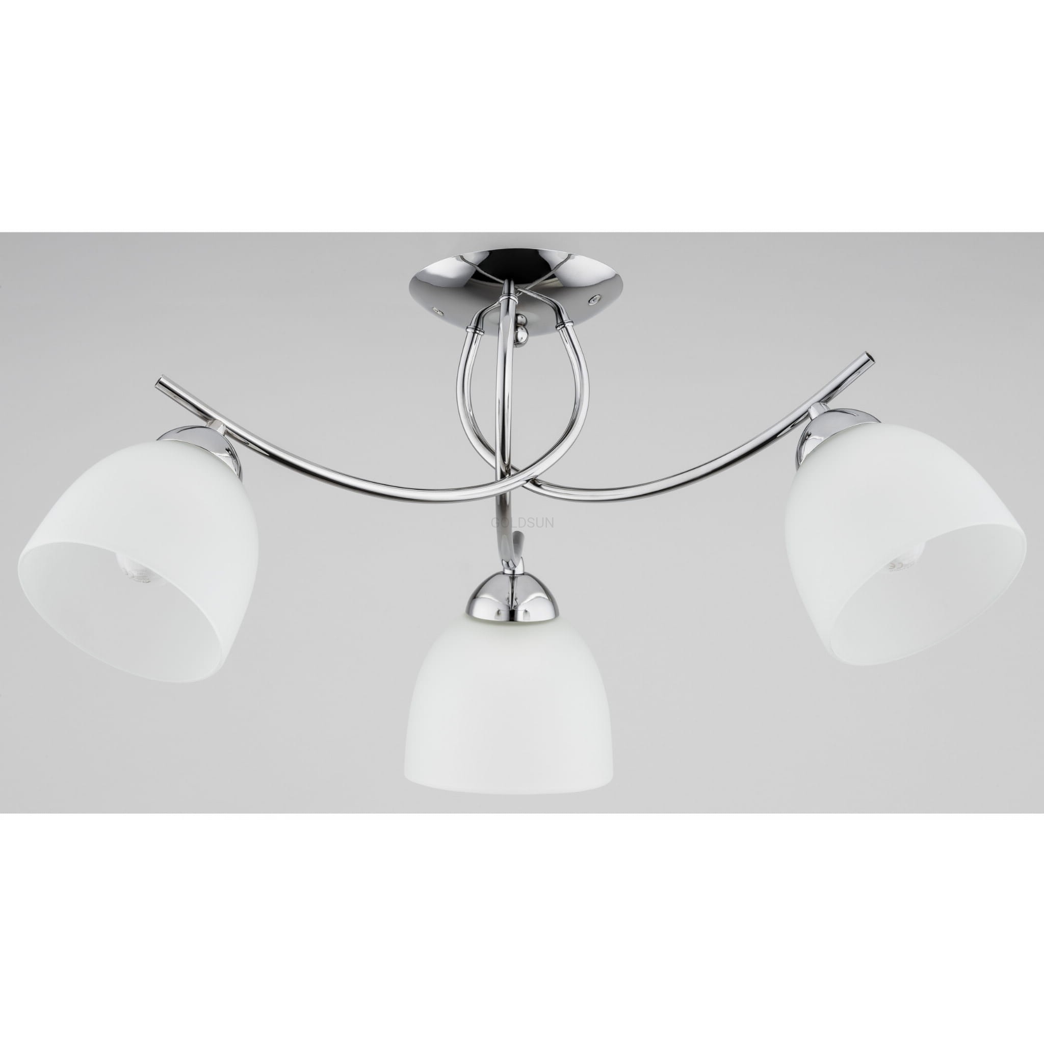 Oryginalny plafon do salonu. Ponadczasowa stylowa lampa sufitowa, która świetnie komponuje się z tradycyjnym wystrojem. Lśniący chromowany stelaż połączono ze szklanymi kloszami.