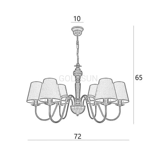 Stalowy żyrandol do pokoju dziennego z abażurami z tkaniny GOLDSUN AB 1335G/24/01 6-ramienny