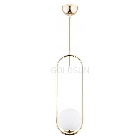 Stylowa wisząca lampa do salonu. Prosta lampa z kloszem na efektownym złotym stelażu idealna do wielu aranżacji, będzie doskonale wyglądać w towarzystwie minimalistycznych mebli.