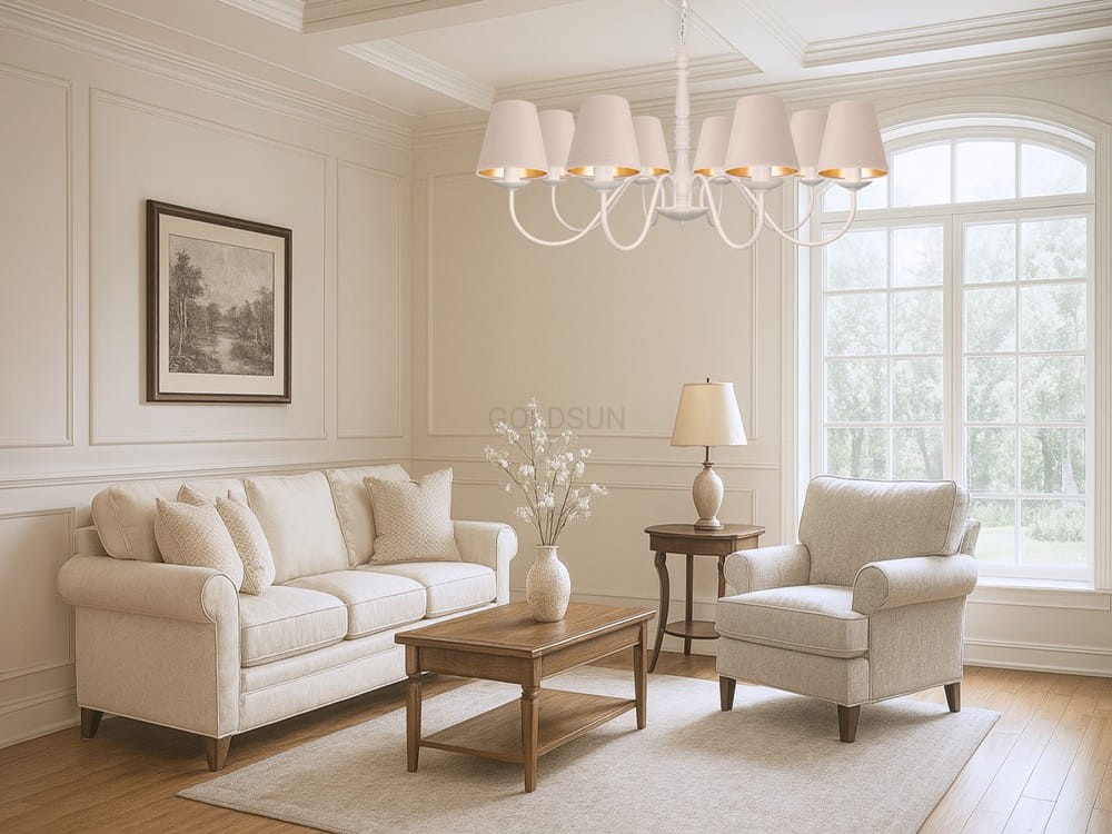 Ten biały żyrandol dzięki swojej średnicy aż 93 cm sprawdzi się w dużych pomieszczeniach, takich jak salon, antresola, restauracje, sale balowe, a nawet eleganckie hotele.