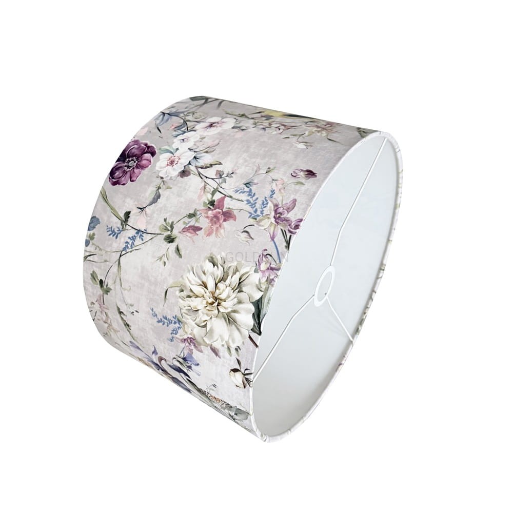 Abażur do lampy walec z welurowej tkaniny w kwiaty