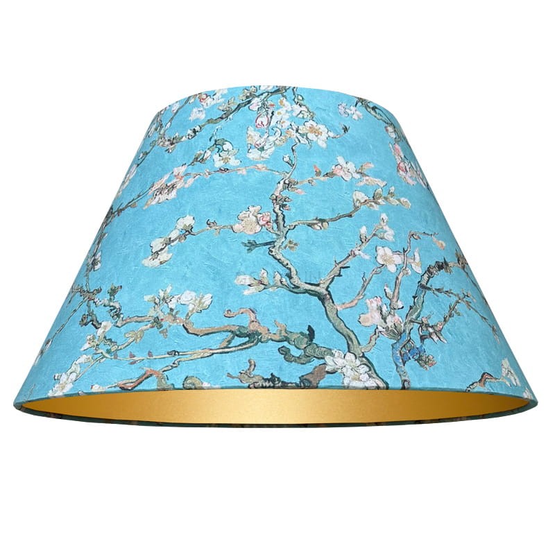 Przepiękny turkusowy abażur do lampy stojącej lub do lampy stołowej wykonany z tkaniny z delikatnym wzorem kwiatu jabłoni. Unikatowy wzór tkaniny, piękne złote wnętrze, ręczne wykonanie, to wszystko sprawia, że abażur to propozycja do niebanalnych wnętrz, urządzonych ze smakiem i starannością. Abażur stworzony z pasją, dostępny tylko w naszej ofercie. Produkt premium.