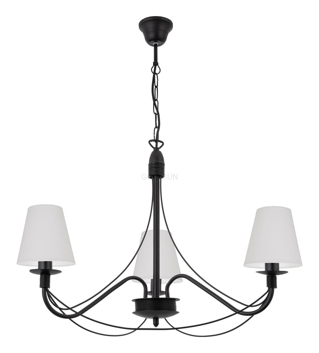 Żyrandol klasyczny do sypialni. Żyrandol HORTENSJA 3-płomienny to idealna propozycja do wnętrz w stylu klasycznym, pasuje również do stylu vintage oraz prowansalskiego. Subtelny czarny stelaż został wzbogacony trzema uniwersalnymi białymi abażurkami, które miękko rozprowadzają światło po wnętrzu. Produkt polski.