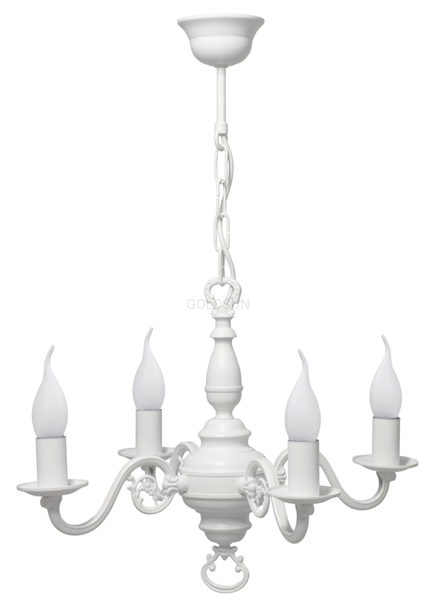 Żyrandol świecznikowy biały do salonu PŁOMYK BIS 1384/W4/BIA/Le